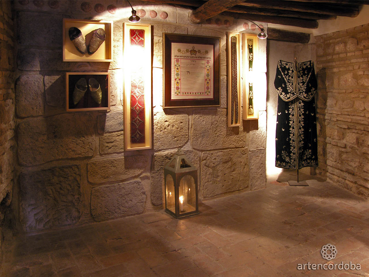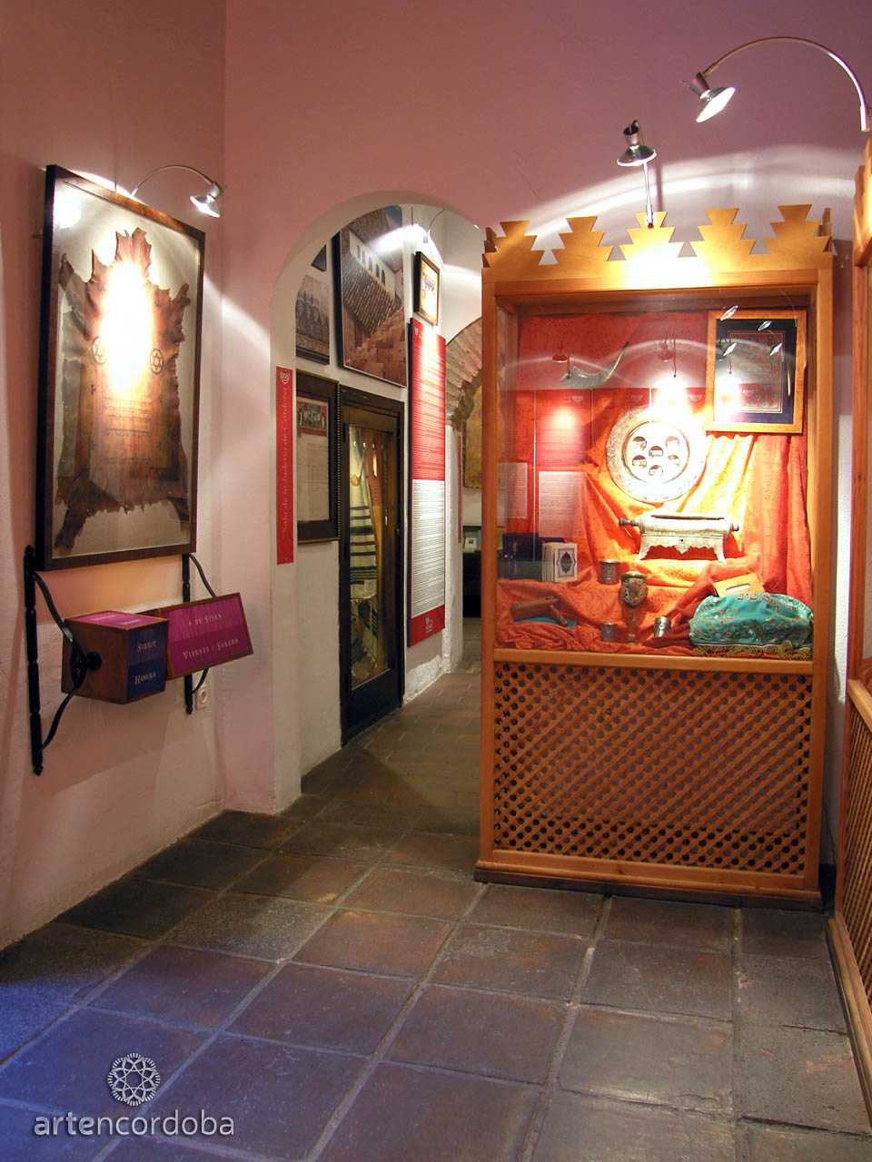 La sala dedicada a la Judería analiza las costumbres sefardíes relacionadas con la Sinagoga, centro espiritual y comunitario del judaísmo. Destaca un plano de la Judería en el siglo XIV y diversas fotografías de sus rincones más representativos. Un panel desarrolla con detalle la historia y significado de la Sinagoga de Córdoba.