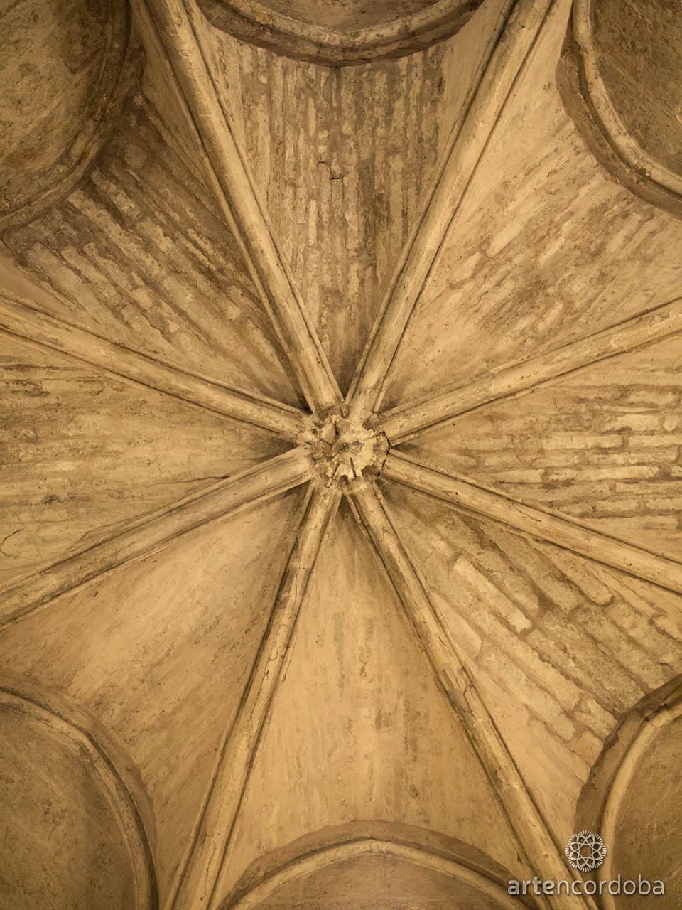 The section of the Tribute Tower has more height than width; it is a dominant tower, the most impressive, with an octagonal floor. The use of the Gothic architecture was not exquisite, such as in the entrance hall or the hall, free of any fineness in their design. We can see that the hand that made this building was not as skilled as in the Tower of the Lions, made by French masters, but in this case, it is believed that it could have been built by Spanish disciples who lack that quality. They erected a four-rib hexagonal and irregular vault, where two of its ribs are extended through apparent pendentives. The capitals, where the ribs finish, were carved in situ, although in some cases this was not done.