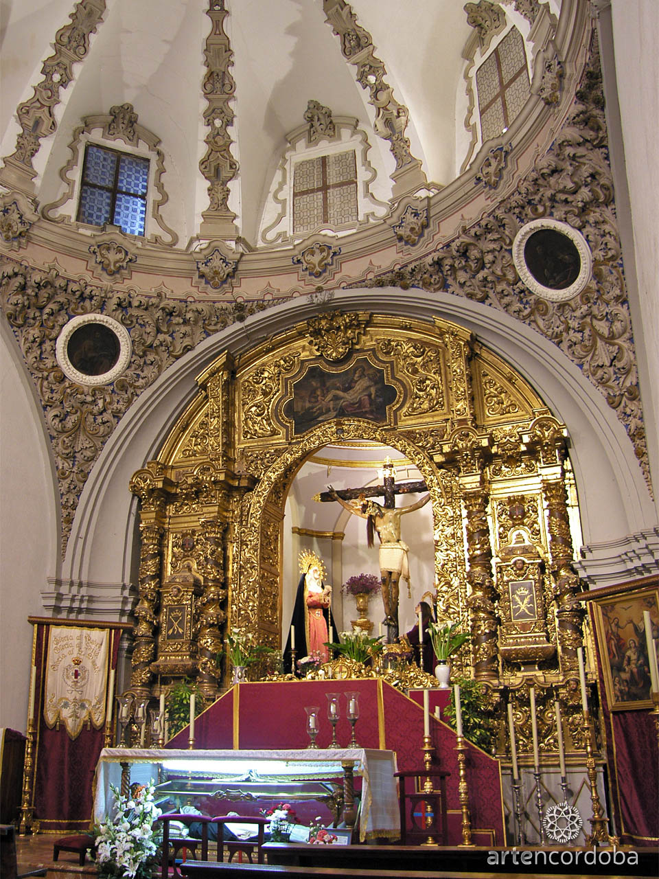As in other Cordoban churches, several altars were built on the Gospel side, while chapels were constructed on the Epistle side. Two chapels stand out: the one dedicated to Nuestro Padre Jesús Nazareno Rescatado, which features a small shrine, and the one of the Holy Christ of Grace, El Esparraguero, which houses the remains of Saint John Baptist of the Conception.