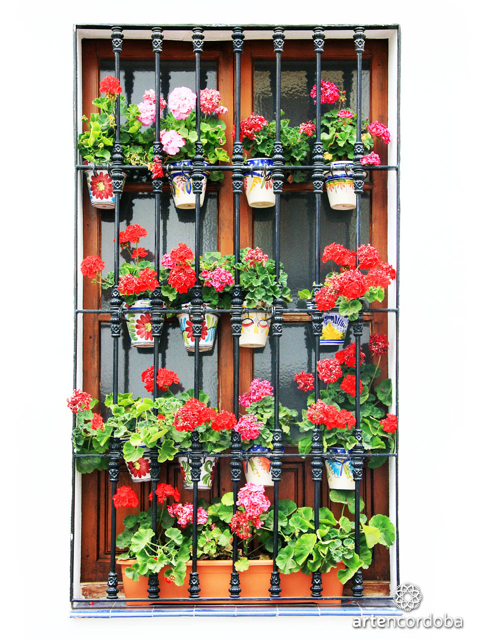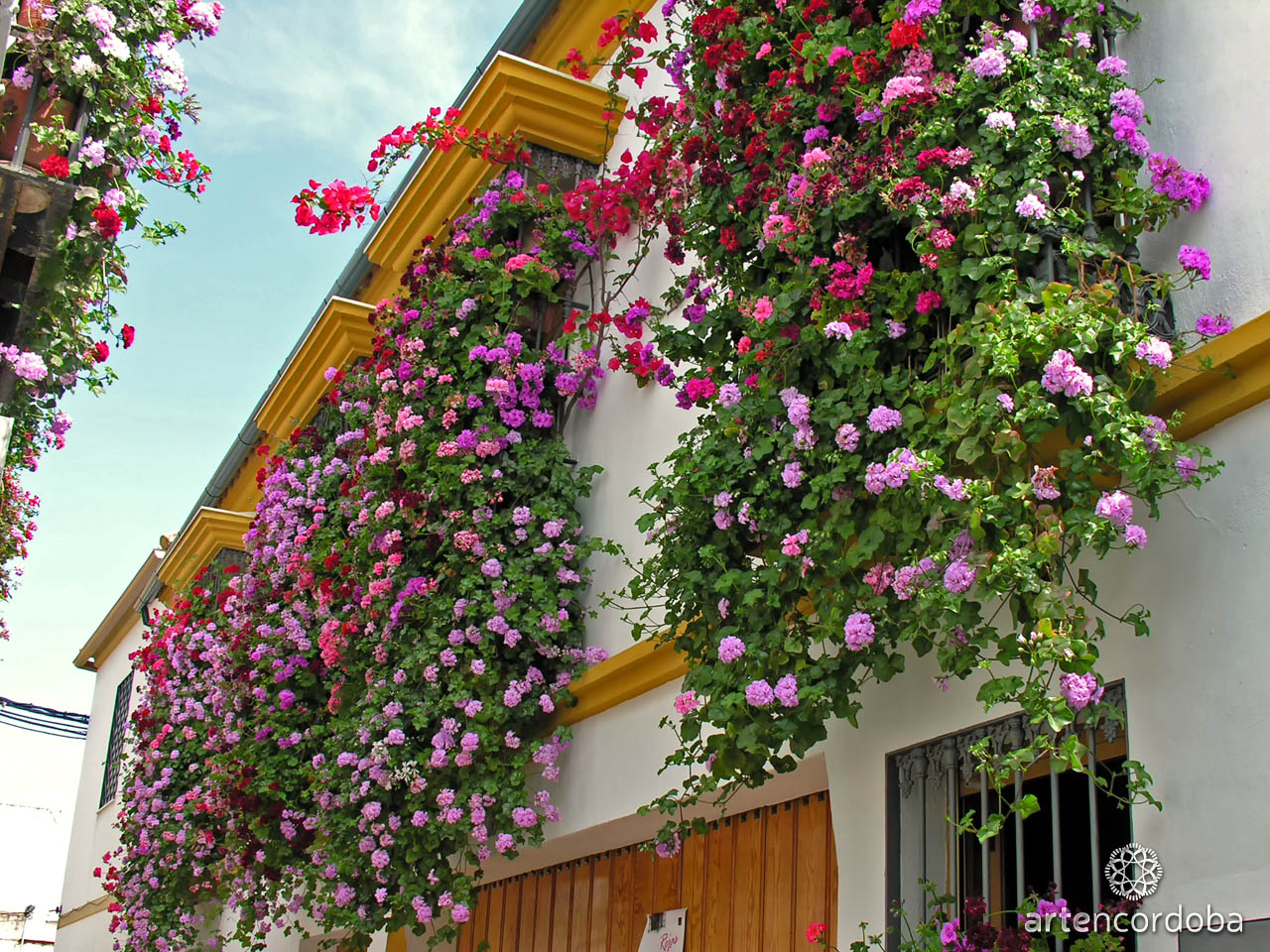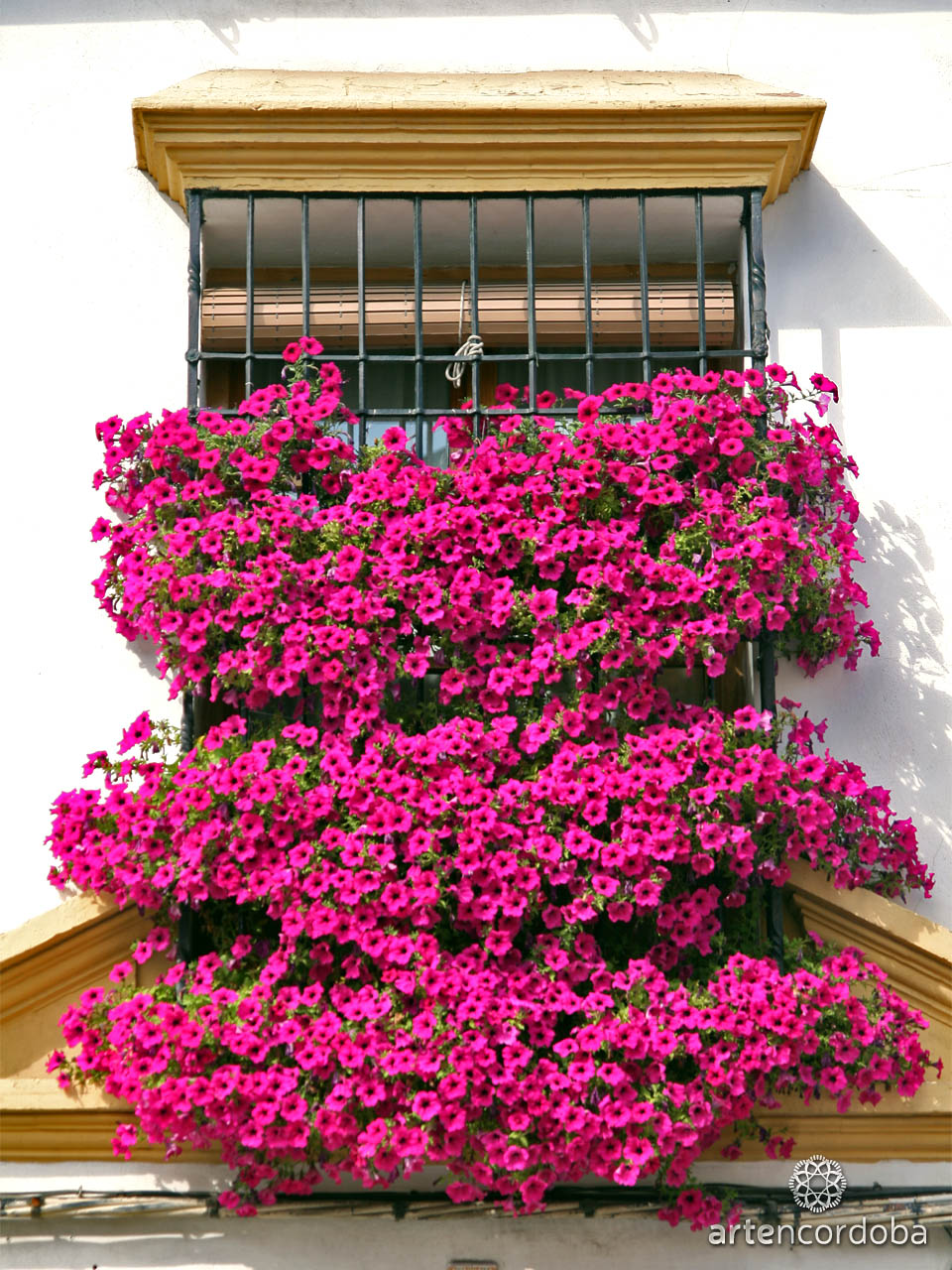 Flowers such as geraniums, bougainvilleas, and carnations are usually used, as well as hanging plants in bright colors, which decorate the grilles and balconies of Córdoba's houses.