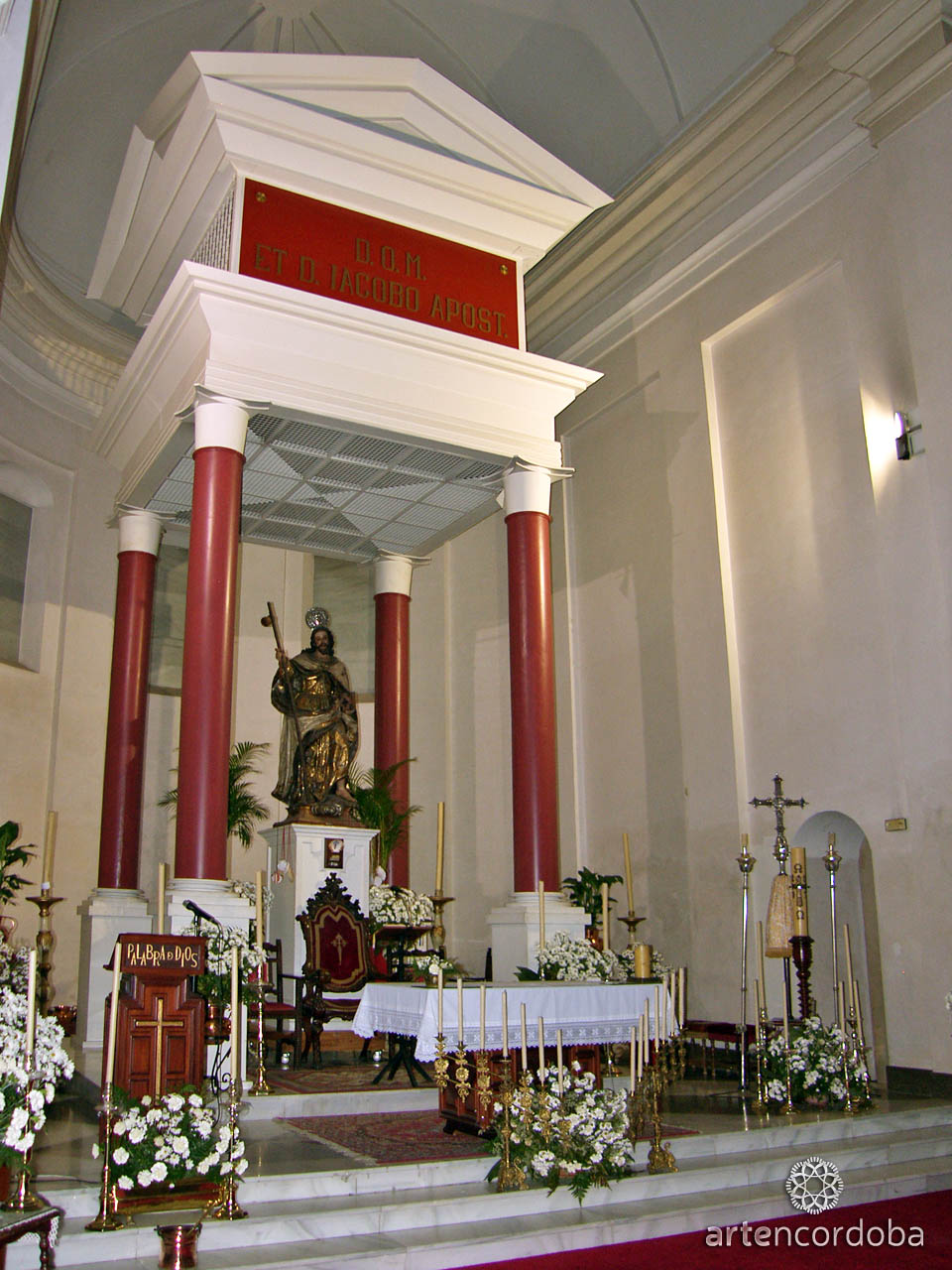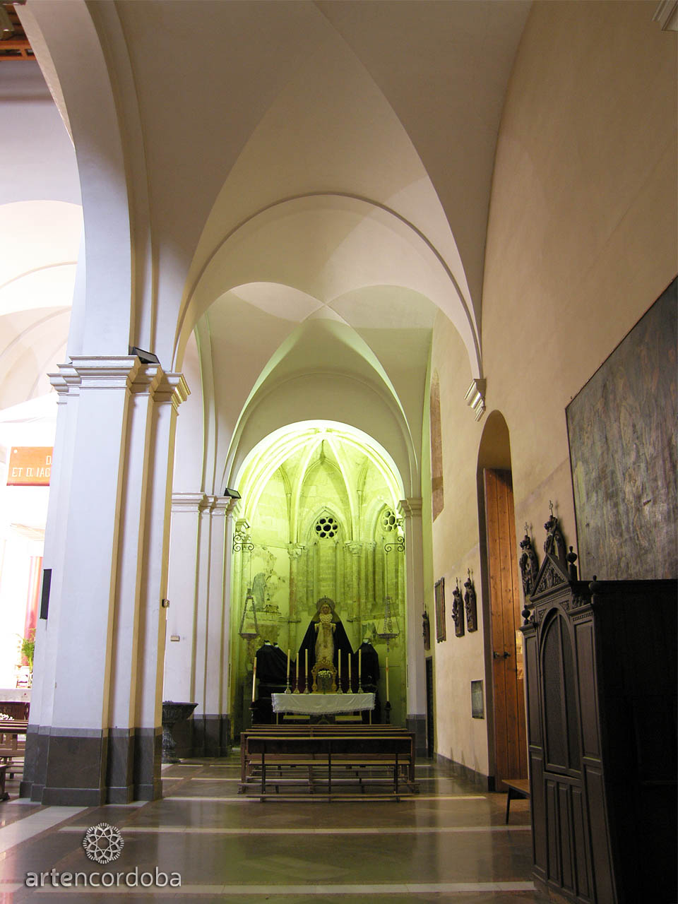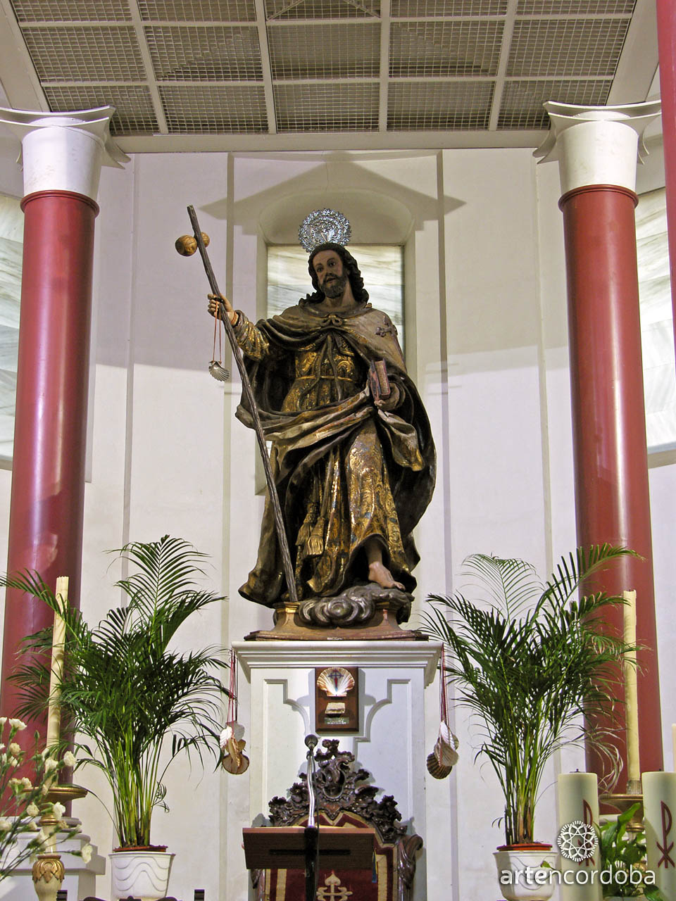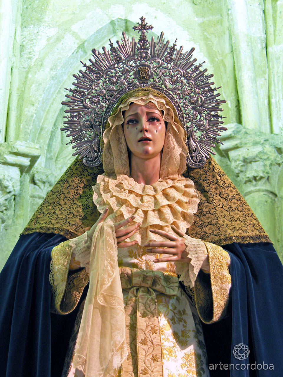 At the foot of the chapel stands the titular image of the other brotherhood hosted by the Church of Santiago, Our Lady of Solitude, a polychrome wooden sculpture created by sculptor Luis Álvarez Duarte around 1974. The Brotherhood of Solitude fills the streets of Córdoba with silence and solemnity during the evening of Good Friday.