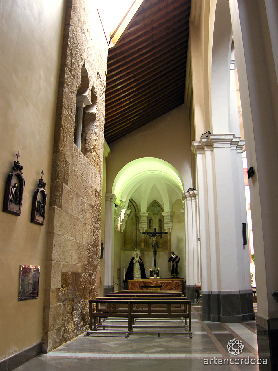 The parishioners of this church have always been few, fewer than those of other churches in Córdoba at the time. The reason is that the church was located near the city wall, and many inhabitants of the parish lived outside the walls. The parish was structured on both sides of what is now Agustín Moreno Street, a historically significant road that has, since Muslim Córdoba, connected the neighborhoods near the river with the city center. The street ended at the square now known as Plaza de Baeza, named after the Gate of Baeza that once stood there, attached to the wall, from which the road to that town originated.