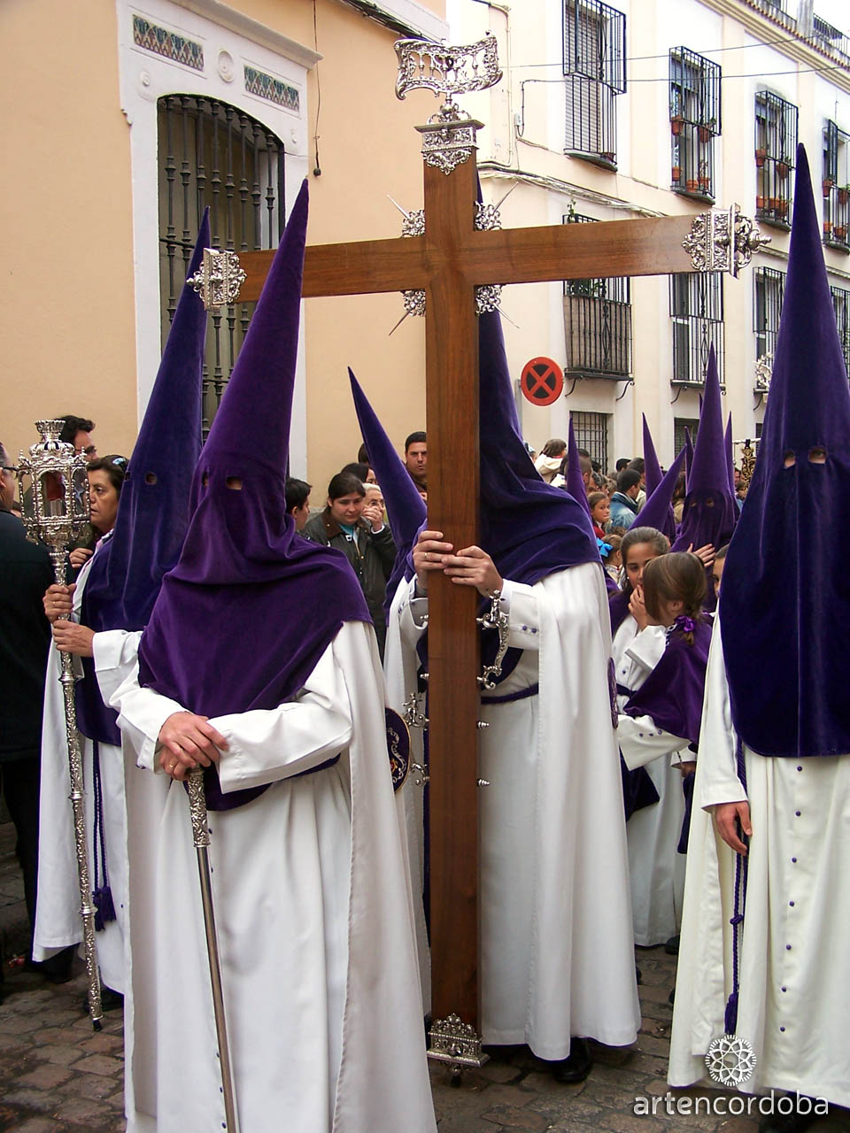 Sacramental, Seraphic and Cistercian Brotherhood of Foremen and Costaleros (Pace Carriers) of the Holy Cross and Brotherhood of Nazarenes of the Holy Christ of Conversion, Our Father Jesus of the Blood in the People’s Contempt, Our Lady Queen of the Angels in her Joyful and Painful Mysteries and Saint John Evangelist.