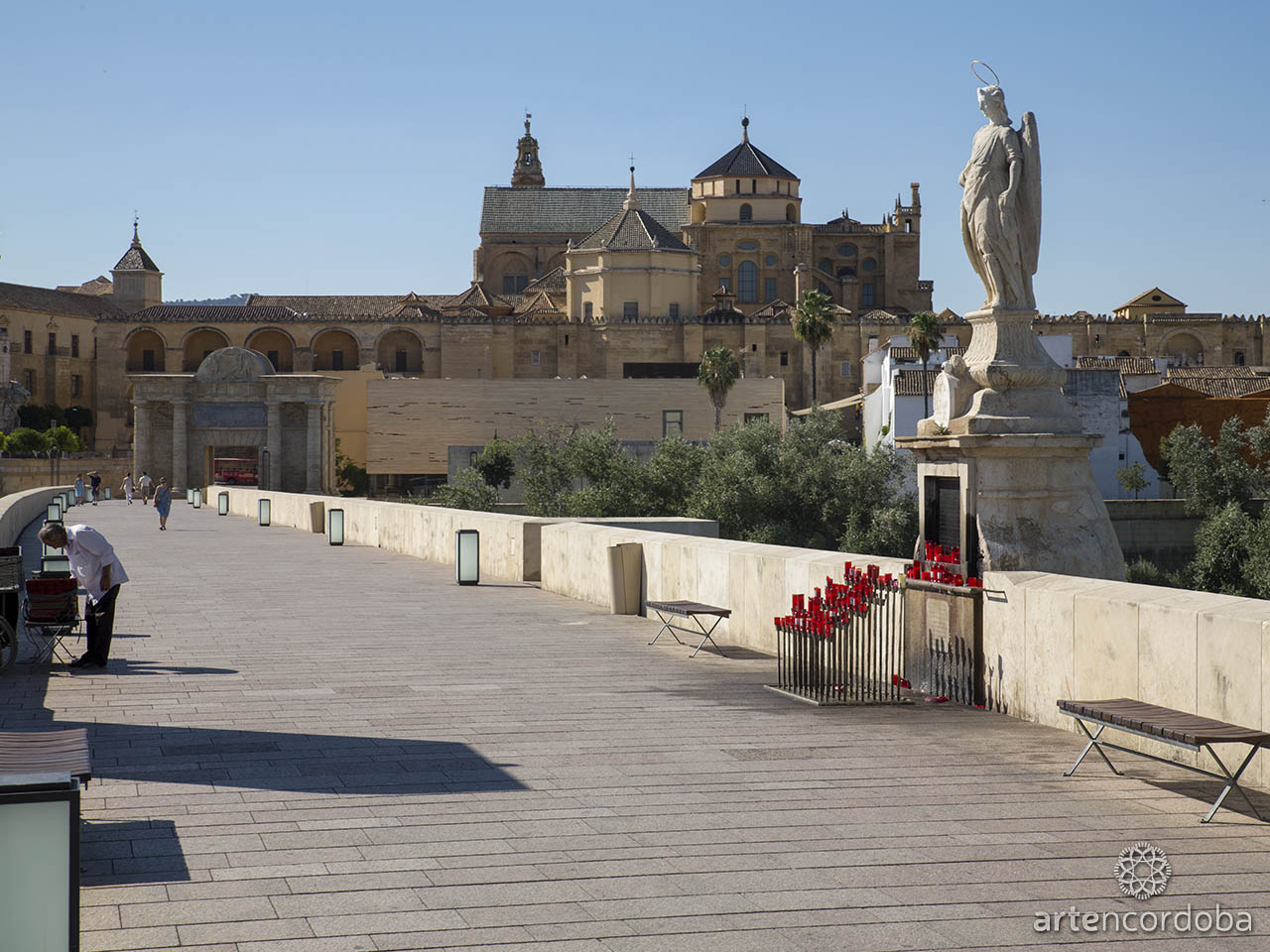 En el puente romano podemos ver una escultura de San Rafael, custodio de la ciudad, y un monumento a los patrones de Córdoba, San Ascisclo y Santa Victoria.