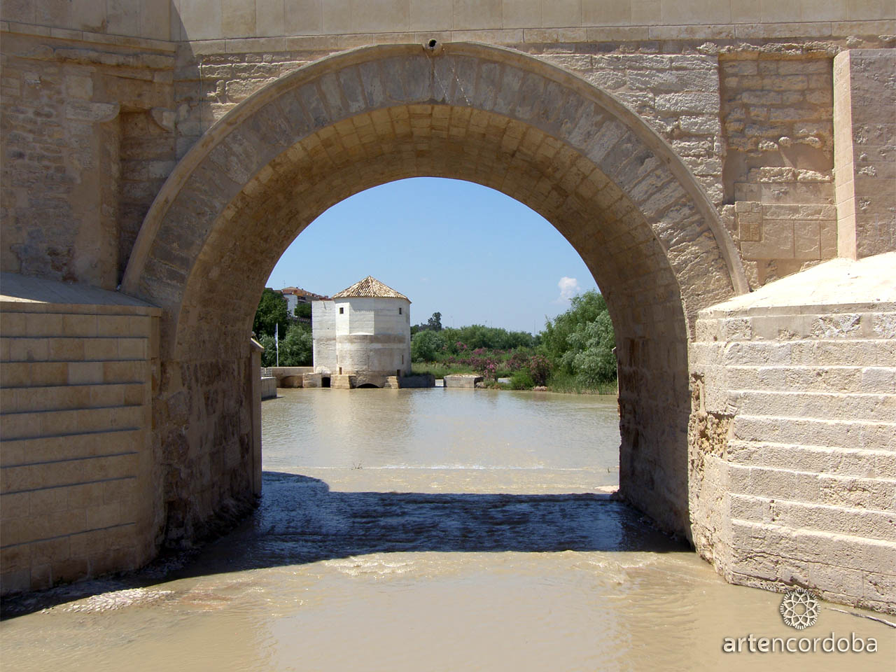 El puente romano fue construido en la zona más baja del meandro del río Gualdalquivir.