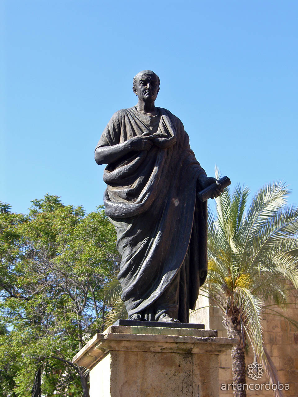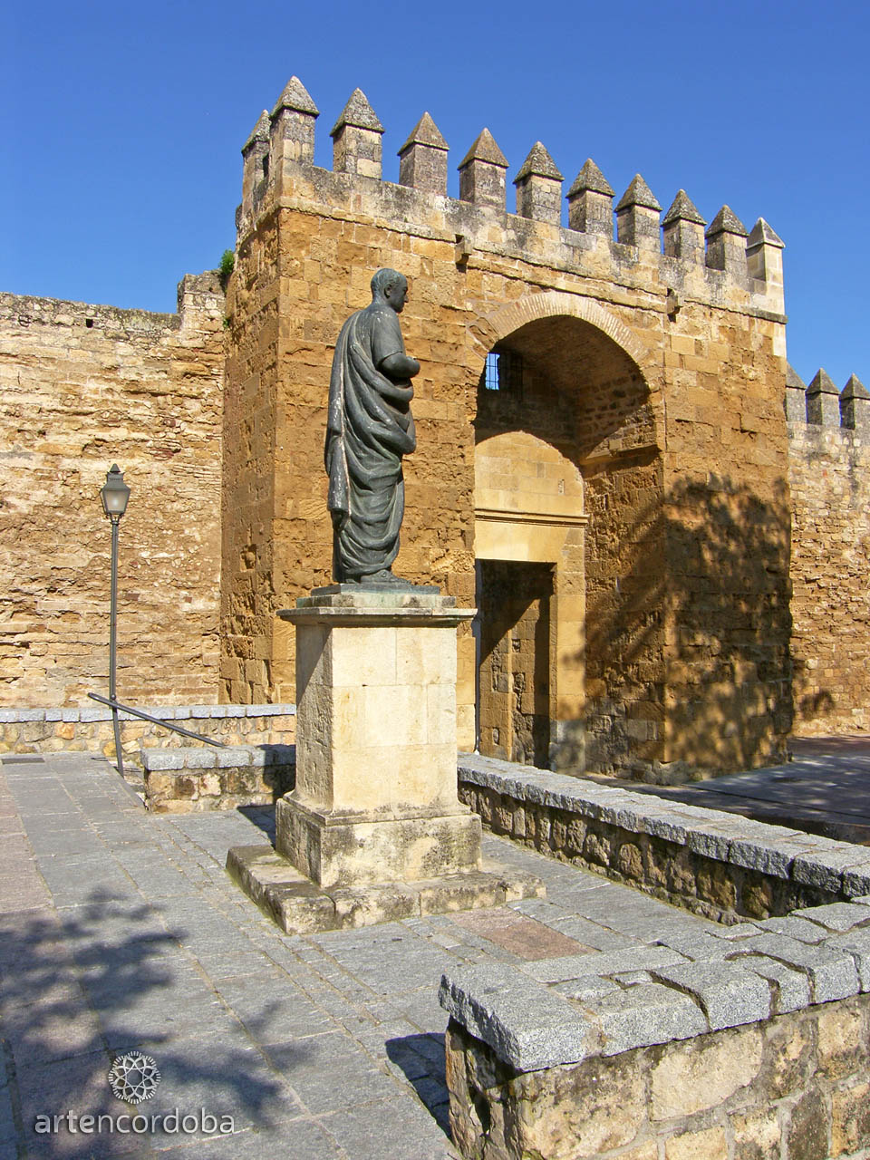 Desde el año 1965, junto a la puerta se encuentra una escultura en bronce dedicada al filósofo cordobés Lucio Anneo Séneca, realizada por el escultor Amadeo Ruiz Olmos, siendo Manuel Benítez El Cordobés, popular torero, quien sufragase los gastos de la misma. Séneca es representado de pie, togado y portando un rollo en la mano, sobre un alto pedestal.