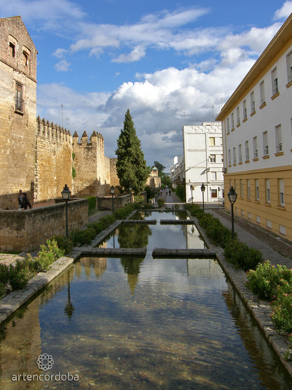 Una reciente restauración ha despojado a la muralla de la vegetación que la abrigaba, tan sólo se respetaron dos cipreses. De este modo se ha podido recuperar el antiguo camino de ronda de la muralla, más elevado que el resto de la calle, y que permite a quien lo desee poder pasear por él, o bien sentarse a ver cómo desciende el agua por cada una de las albercas del citado estanque.